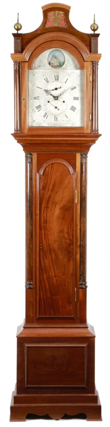 An interesting long case clock with a rocking ship activated by the pendulum.