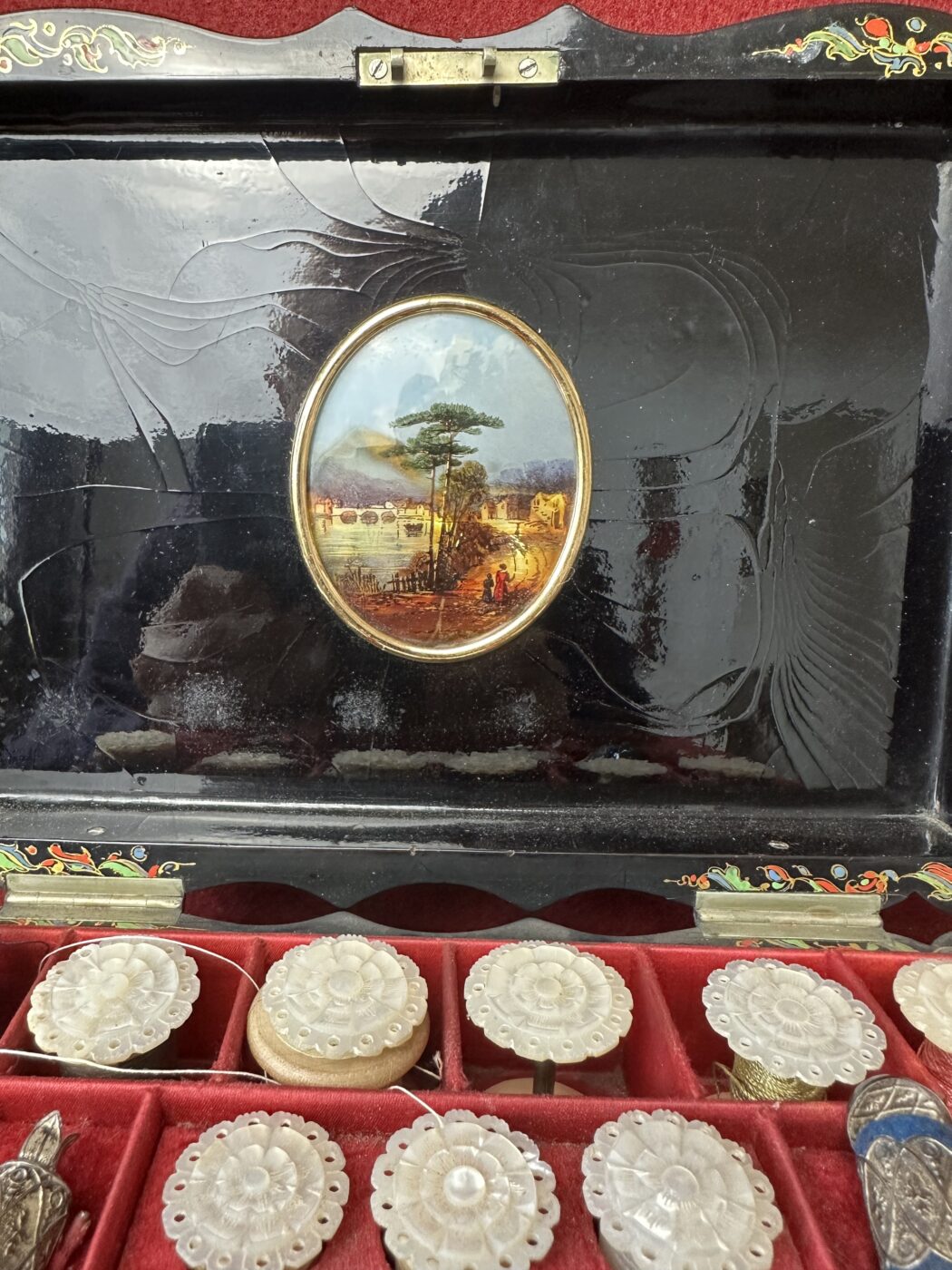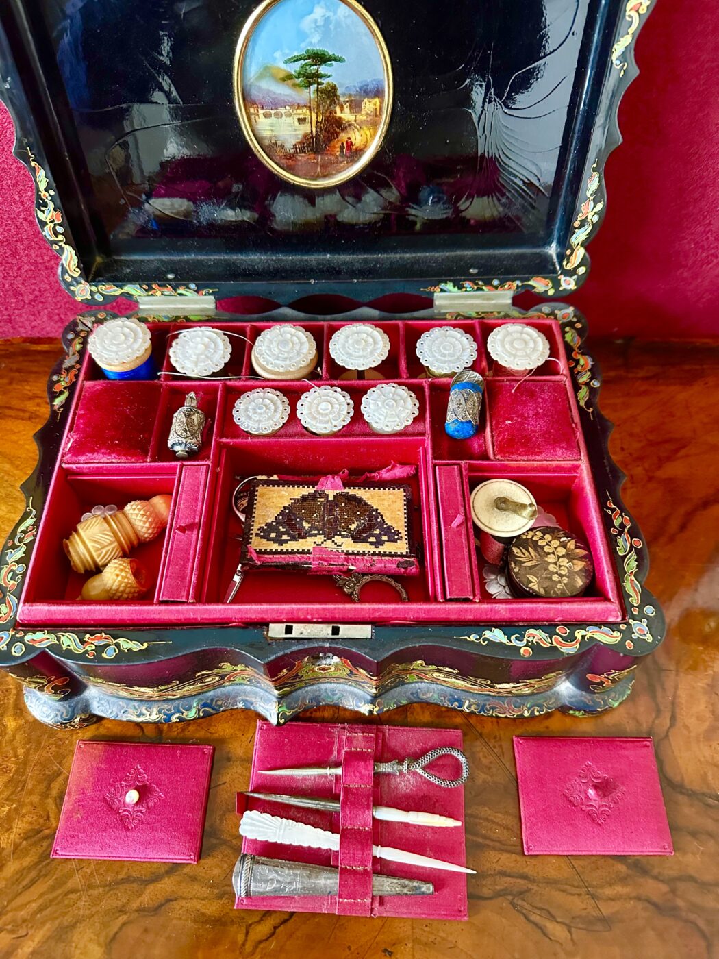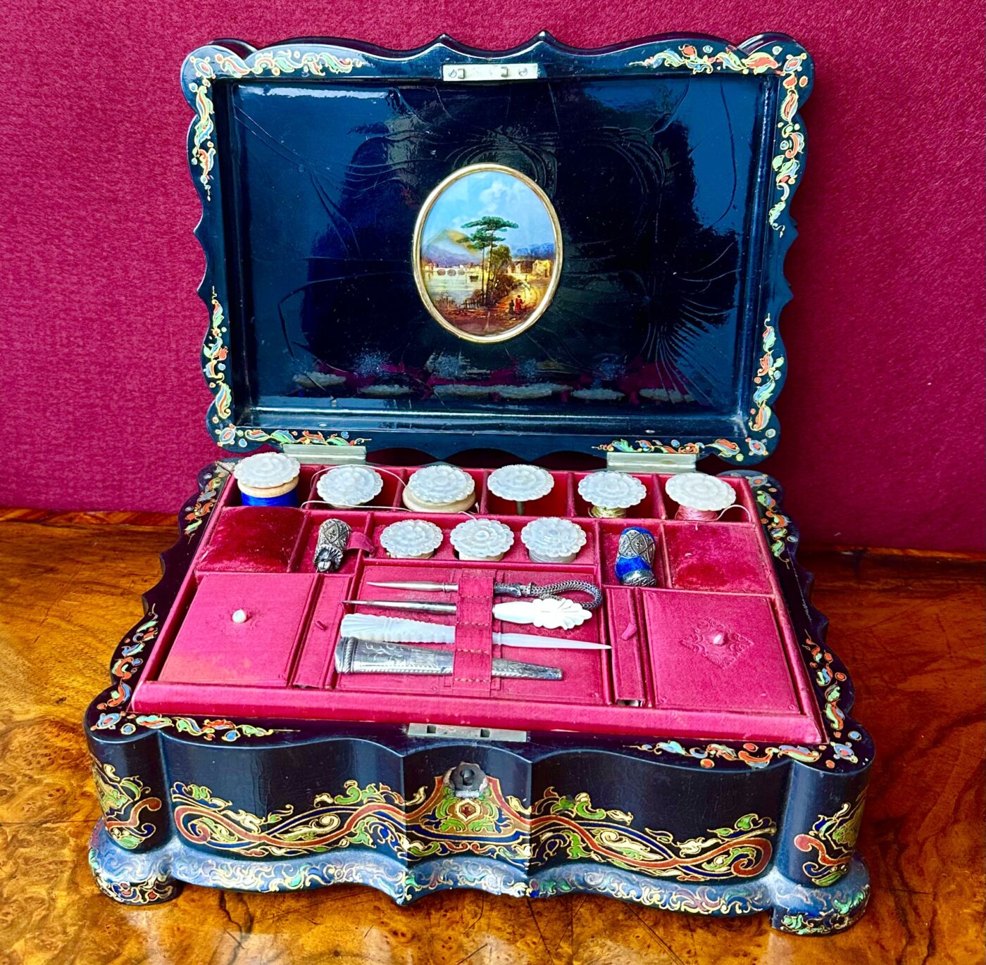 Victorian Papier mache sewing/work box, circa 1875